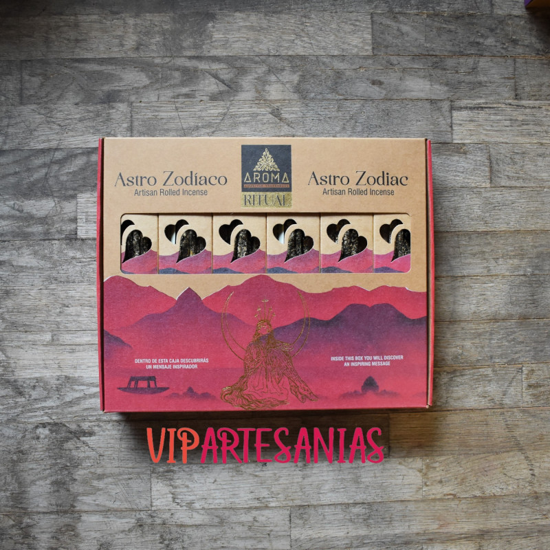 Incienso tipo orgánico para diferentes rituales, en este caso de Astro Zodiaco, elaborado 100% con madera sostenible. Cada cajita incluye un mensaje inspirador