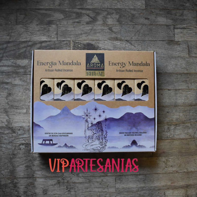 Incienso tipo orgánico para diferentes rituales, en este caso de Energía Mandala, elaborado 100% con madera sostenible. Cada cajita incluye un mensaje inspirador