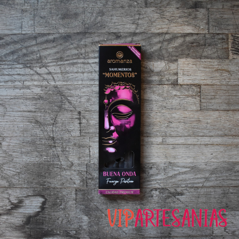 Disfruta del sahumerio Buena Onda, con su exquisito aroma a uvas dulces y frutas caramelizadas.