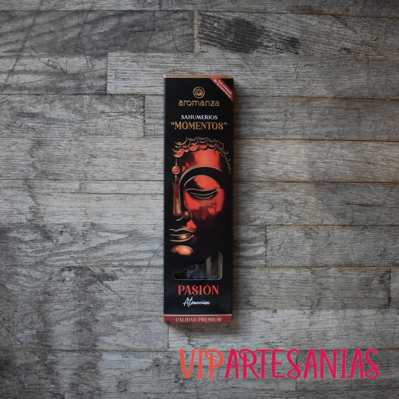 Disfruta del sahumerio Pasión, con su exquisito aroma a con notas de rosas turcas, ylang ylang, jazmín, musk y vainilla.