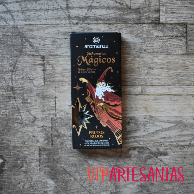 Los Sahumerios Mágicos de Aromanza poseen una fragancia mágica realmente poderosa. Es un producto diseñado para crear un ambiente relajante y armonioso en la mitad de tiempo que un incienso convencional, en cualquier espacio. Cada sahumerio esta impregnado con una fragancia exótica. Esta fragancia se ha seleccionado cuidadosamente para proporcionar una experiencia olfativa única, evocando el dulzor y toque exótico de los Frutos Rojos.