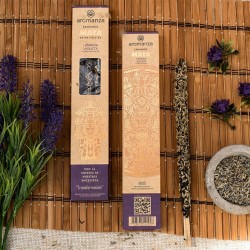 Los Sahumerio Maya de Aromanza son inciensos orgánicos elaborados en varillas combinadas de tamaño extra, aportando una larga duración y una fragancia intensa a la par que delicada. El Sahumerio Maya de Lavanda con Violeta es ideal para crear un ambiente Relajante y Antiestrés.