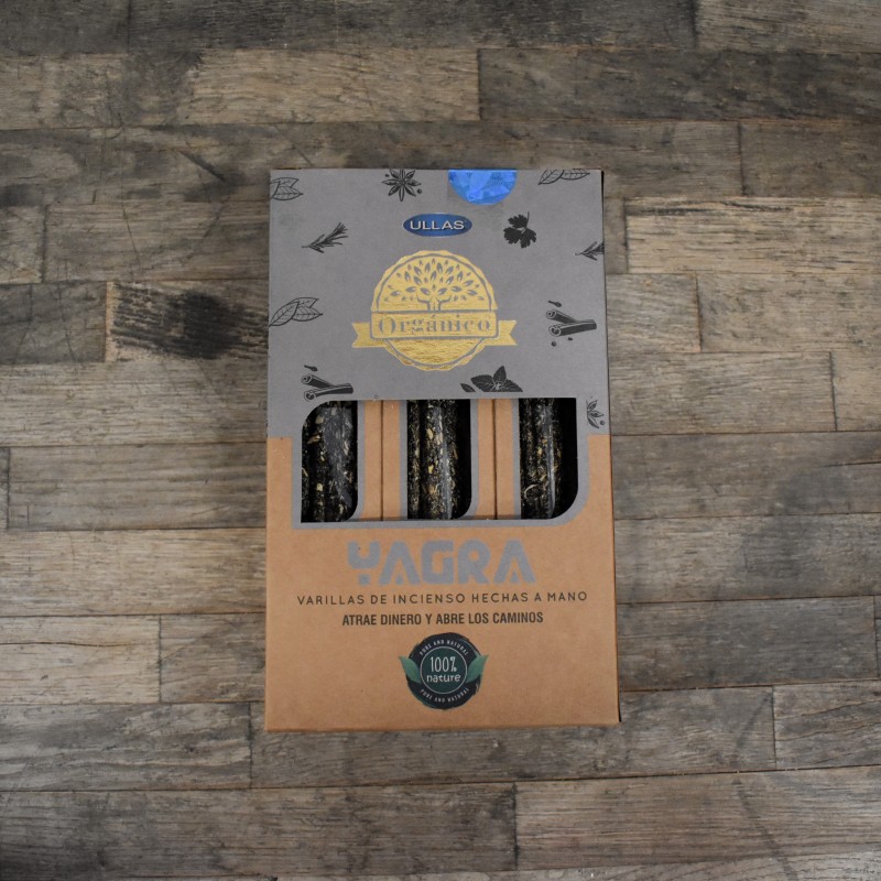 Estas varillas de incienso están elaborados con resinas orgánicas de diferentes procedencias y enriquecidas con sus aceites esenciales naturales. Su fragancia favorece la relajación y meditación como práctica diaria, a la vez que llena el ambiente de un aroma profundamente embriagador. Estas mezclas están hechas según la antigua práctica de las culturas mayas e incas de quemar inciensos en sus rituales. Este incienso orgánico posee un exquisita fragancia a Yagra.